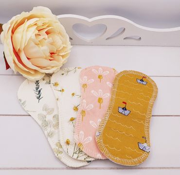 Bei mir bekommt ihr waschbare Slipeinlagen, sowie Binden verschiedener Ausprägung und könnt euch noch dazu das Design selbst aussuchen