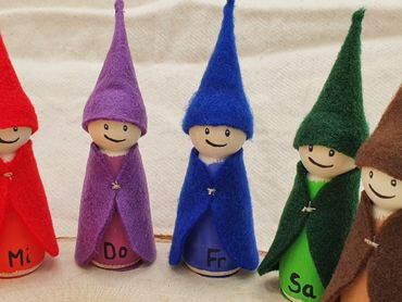 Eines meiner liebsten Produkte sind meine Wochentagswichtel aus Holz für Kinder die noch nicht lesen können.
